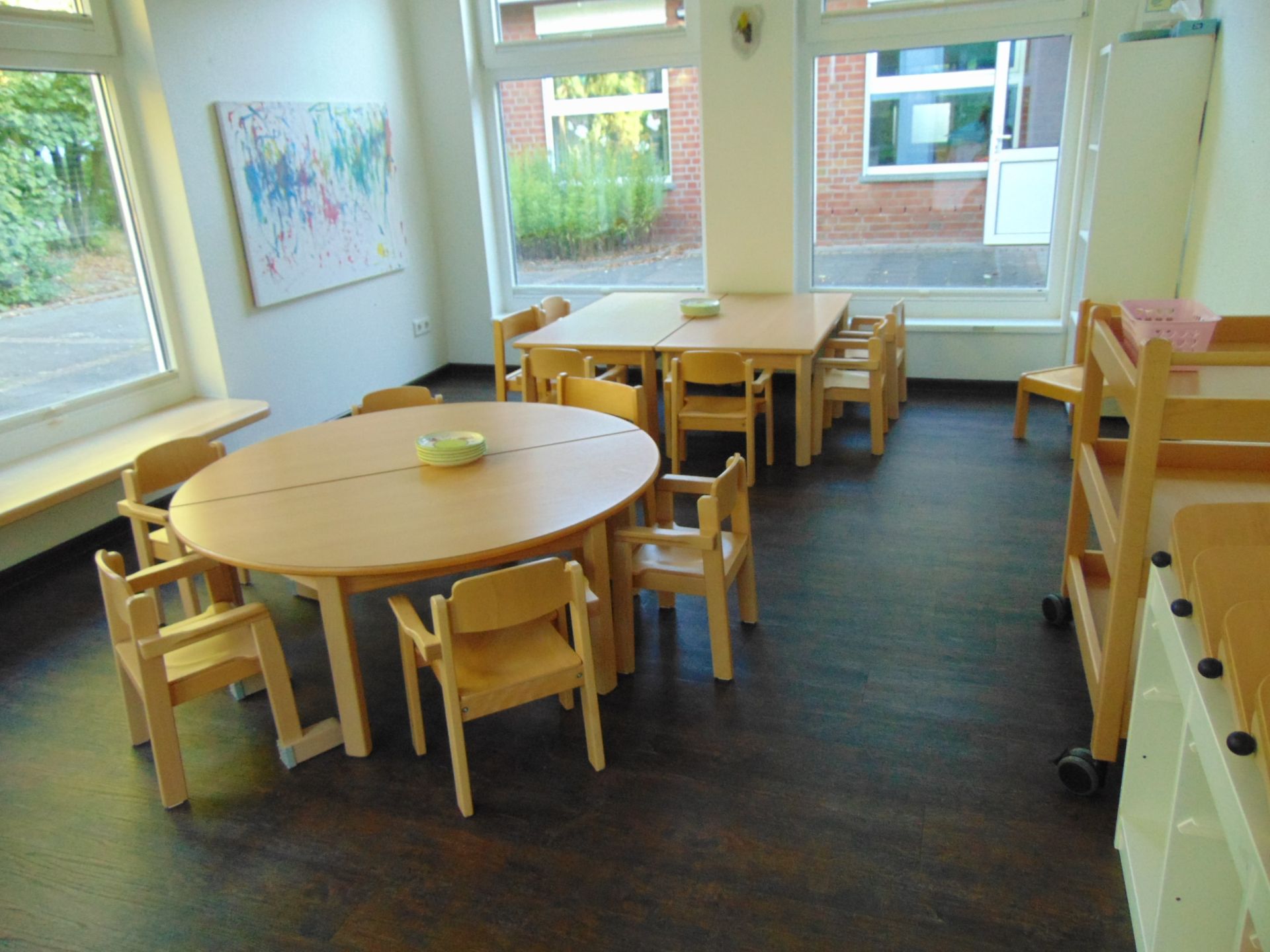 Der Gruppenraum und der Nebenraum bieten den Kindern unterschiedliche Bildungsbereiche und werden individuell angepasst. Die Kinder können die verschiedenen Spielbereiche entdecken und nutzen oder an angeleiteten Angeboten teilnehmen. Angebote können in der Gruppe, aber auch in den anderen Räumlichkeiten stattfinden.